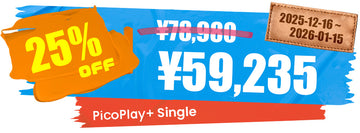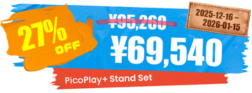 PicoPlay+同梱物:プロジェクター本体、リモコン、リモコン用単4電池×2、オーロラフィルター、クイックスタートガイド、電源ケーブル一式、携帯用バッグ