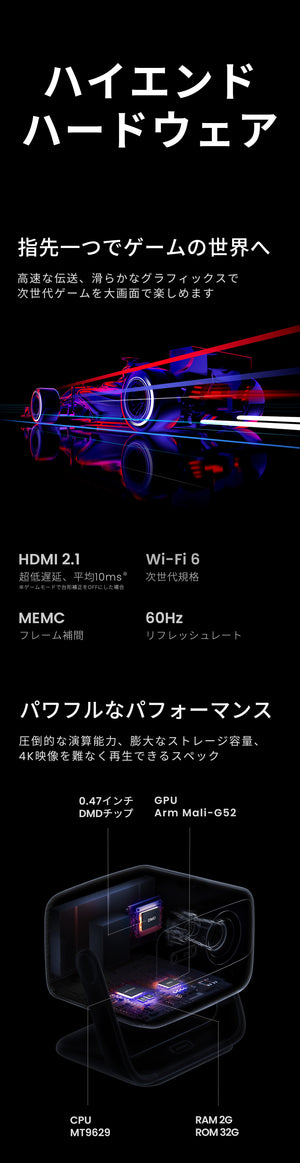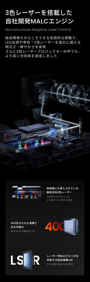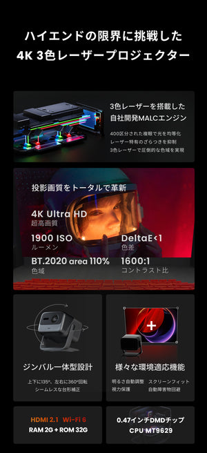 JMGOの最新プロジェクターJMGO N1/N1Sシリーズは、ビーム状にまとまった強力な光を照射するレーザー光源を搭載しています。 光が拡散してしまう従来のLED光源のプロジェクターに比べ、より明るく、より省エネで、色ムラのない鮮やか...