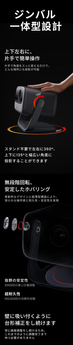 ジンバル一体型設計&シームレス台形補正で投影がスムーズ!天井投影も超簡単