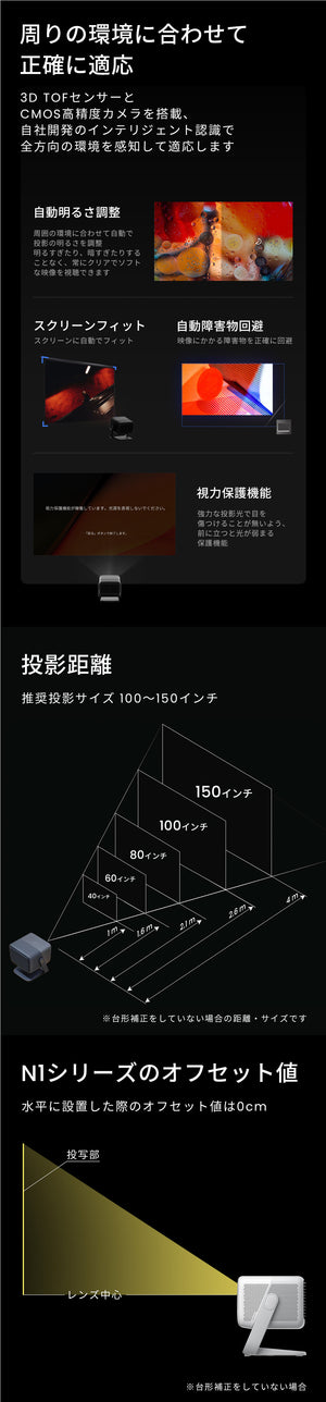 推奨投影サイズ:100-150インチ