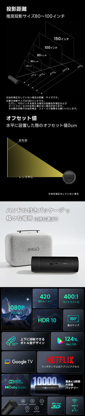 ※記載されている全ての数値はJMGO Labにて測定したデータを元にした理論値です。実際の性能や数値は、生産ロット、ソフトウェアバージョン、使用状況や環境などの条件により異なることがあります。